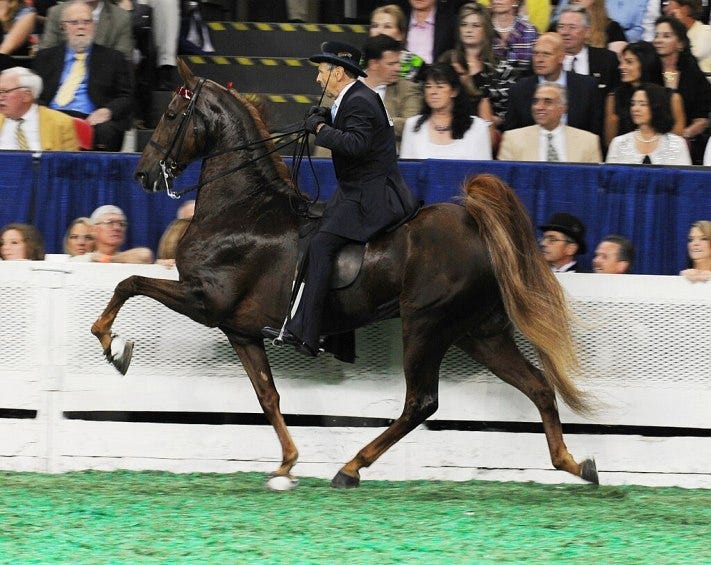 They compete in five primary divisions: Five-Gaited, Three-Gaited, Fine Harness, Park, and Pleasure. In these divisions, they are judged on performance, manners, presence, quality, and conformation.