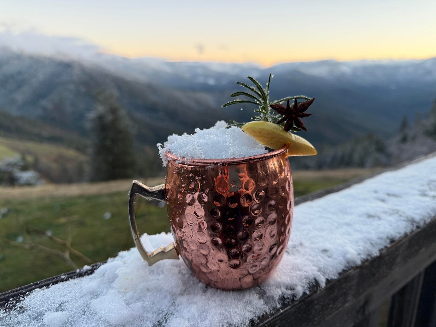 Instead of citrus bite, it leans into pear. Instead of ice, it melts over snow. Ginger brings warmth, vanilla softens the edges, and star anise lives in the air rather than on the tongue. It changes as you make it and again as you drink it. Familiar mug, fully sensory experience.