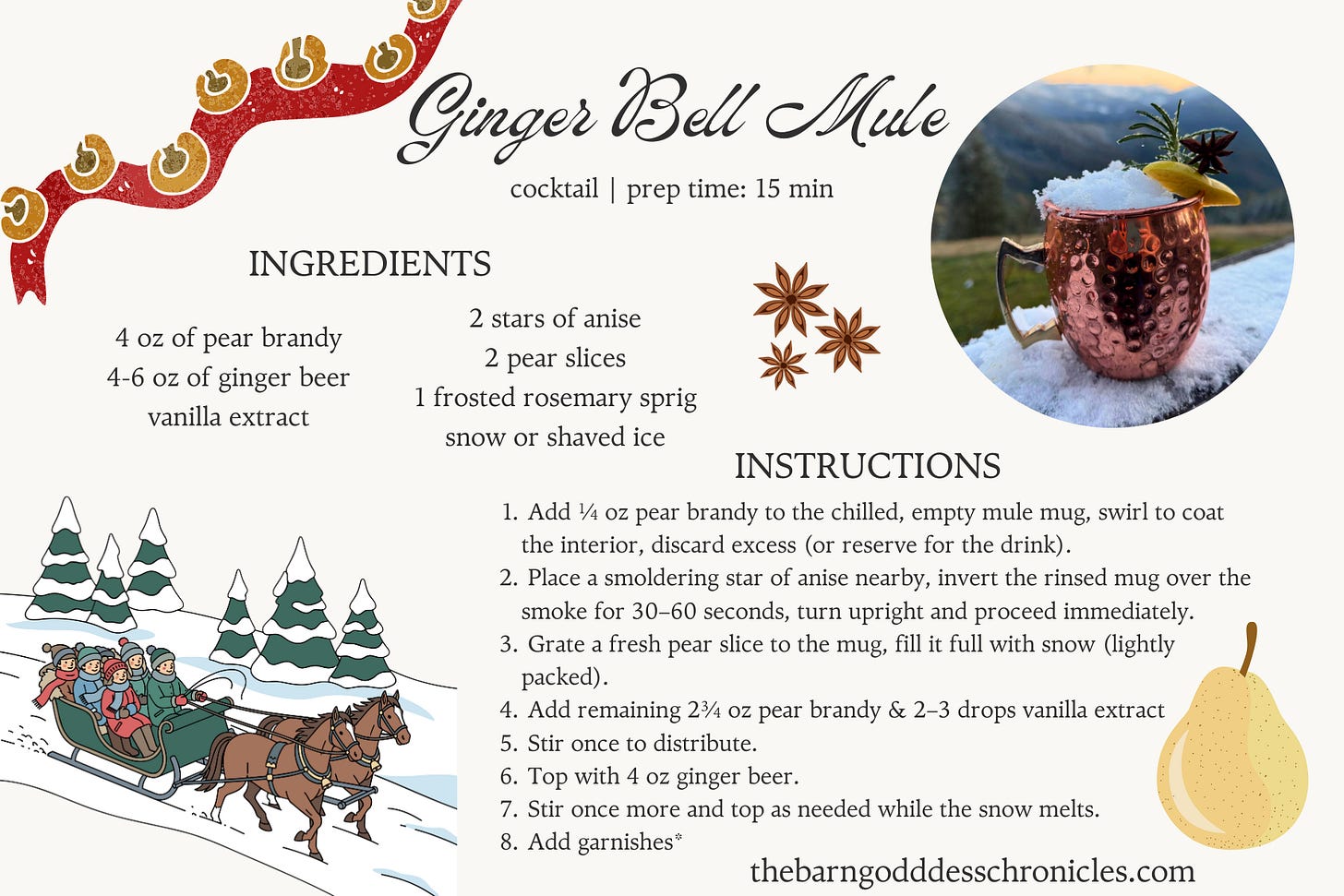 The Ginger Bell Mule fits right into that world. It is cold on purpose. The flavors are warm, but the drink stays crisp. It is what you sip by a fire with your coat still on, or in a warm barn while your boots are drying.