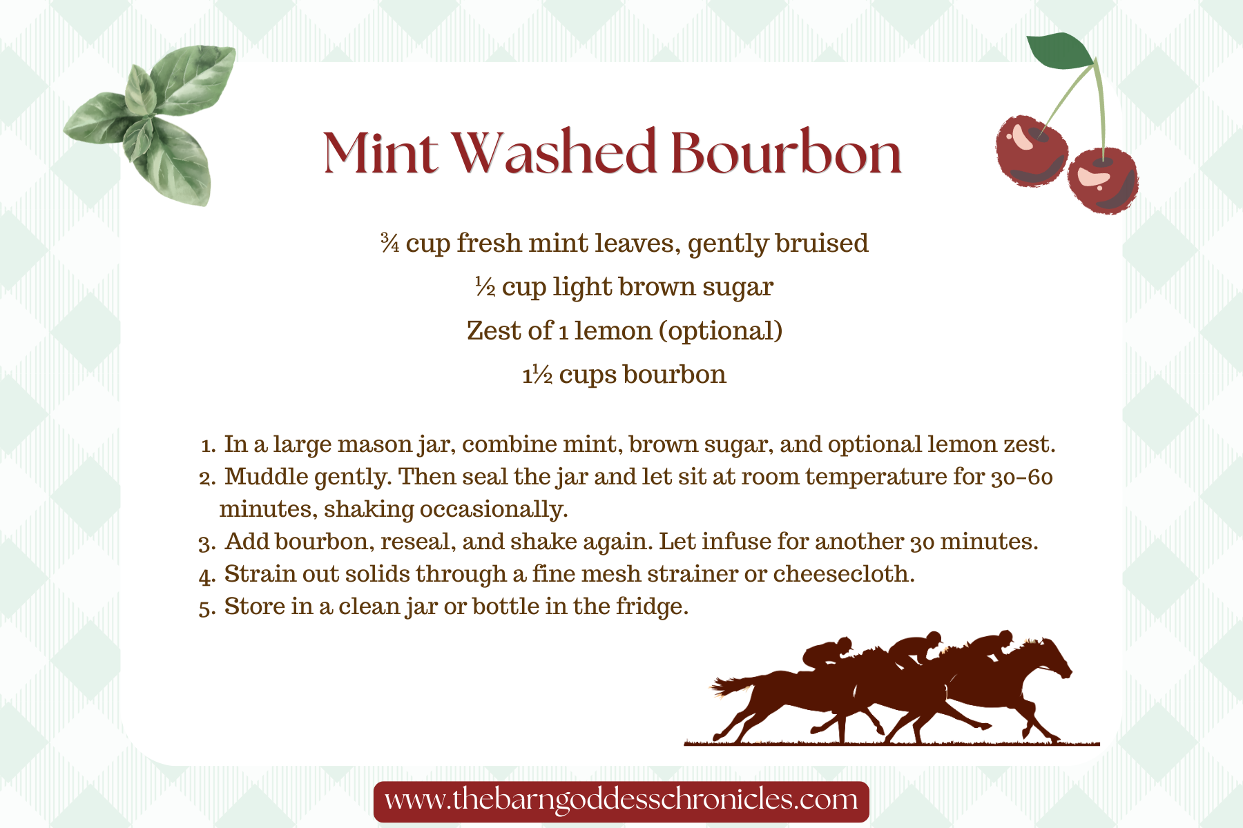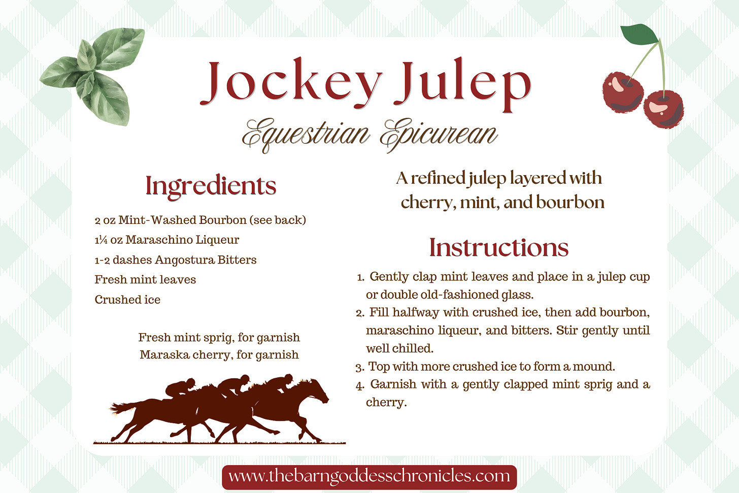 A considered pairing of two classics, blending the cherry-bright character of the Jockey Club with the cool, herbaceous ease of a Mint Julep.
