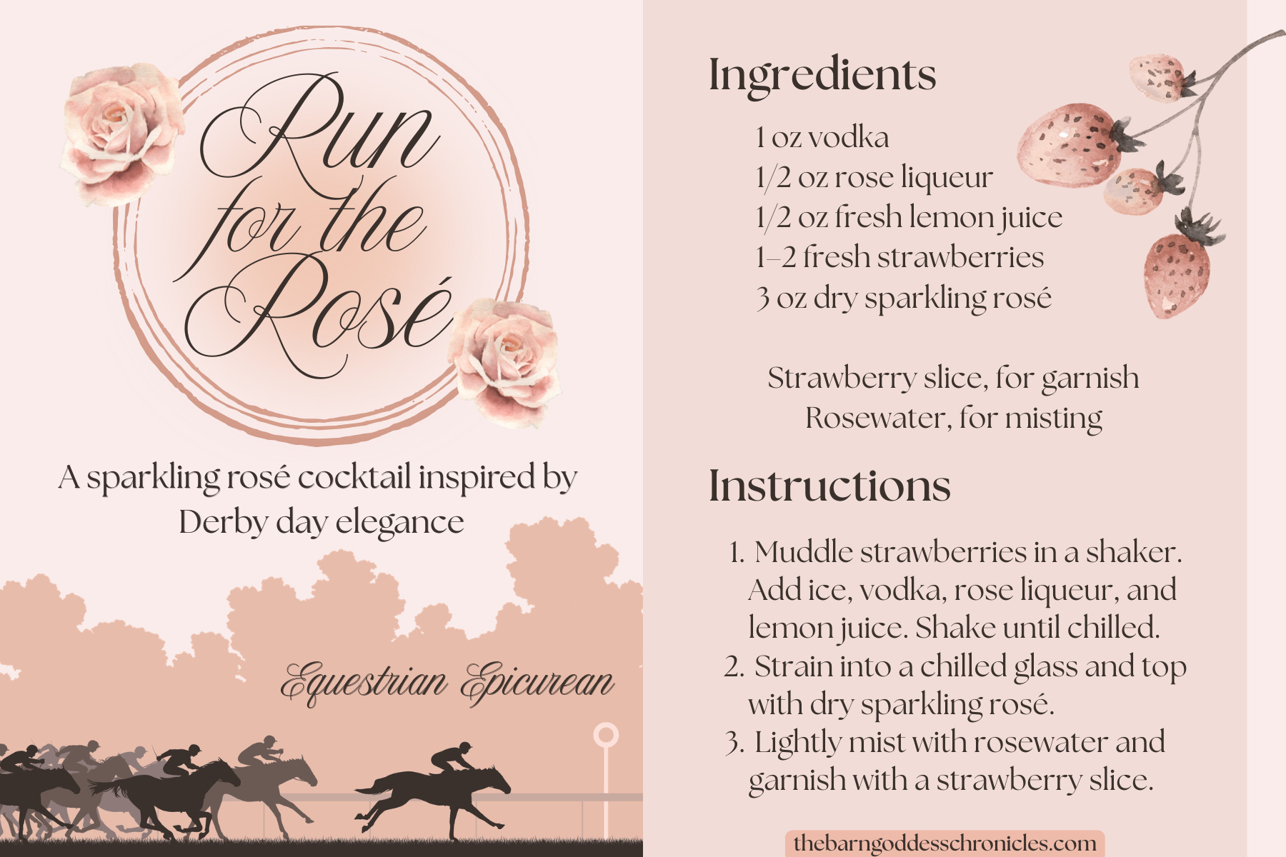 Round out your menu with classic Derby Day drinks like the Mint Julep (of course), or opt for an Equestrian Epicurean signature cocktail for a more elevated take.