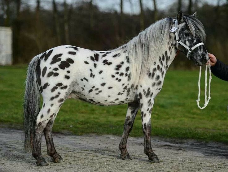 From Denmark and delightfully spotted. Basically the equine equivalent of a Dalmatian.